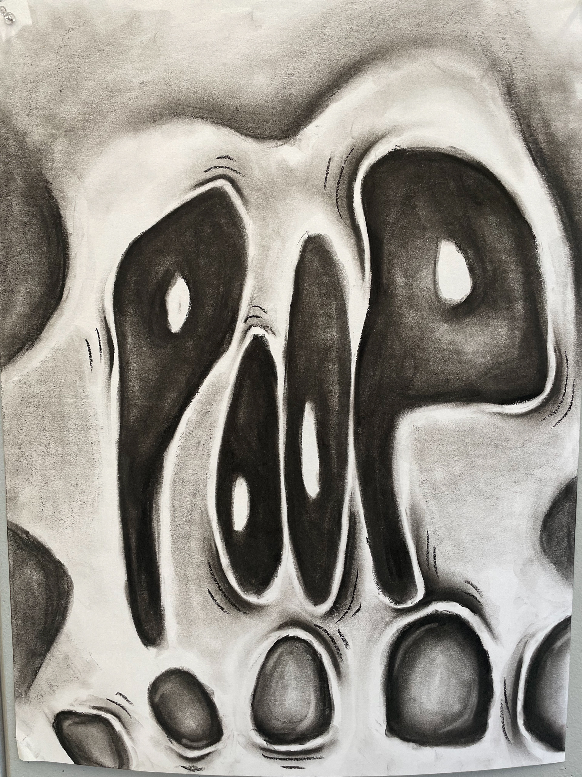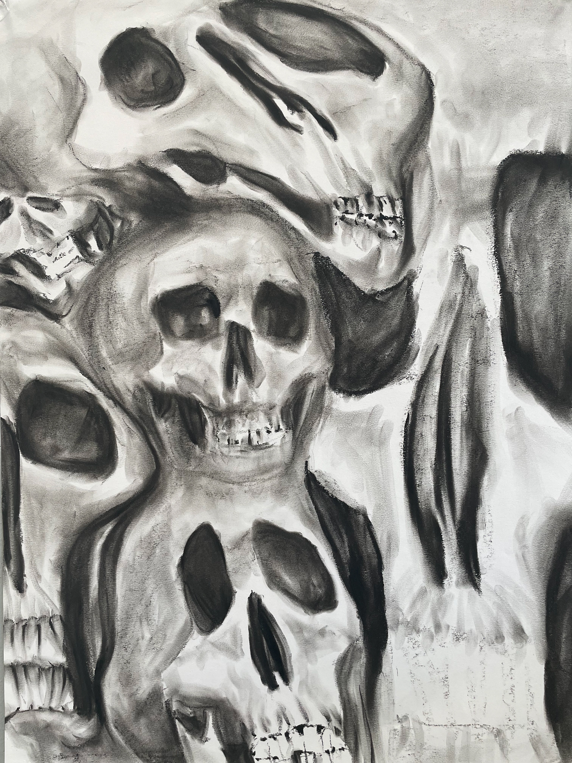 series of two drawings created to demonstrate 25% and 75% abstraction. done with still life skulls using charcoal stick on 18x24 in.